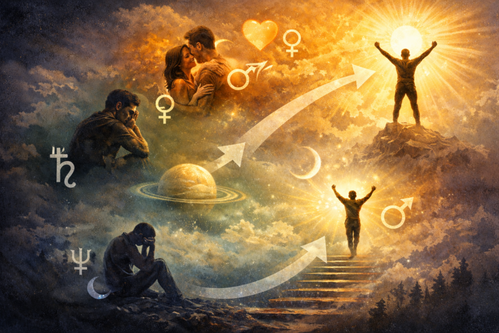 - Αγάπη (Love) – Καθώς η ελπίδα μεγαλώνει, το άτομο γίνεται ικανό να νιώσει ξανά αγάπη – τόσο να δώσει όσο και να λάβει. Η αγάπη εδώ έχει ευρεία έννοια: είναι η αγάπη προς τον εαυτό (αυτο-συμπόνια), προς τους άλλους (συγχώρηση, φιλία, έρωτας) και προς τη ζωή γενικότερα. Στο υπαρξιακό πλαίσιο, η αγάπη θεωρείται θεμελιώδης πηγή νοήματος – θυμόμαστε ότι ο Frankl έγραψε πως το νόημα της ζωής αποκαλύπτεται μέσα από την αγάπη και ότι «η αγάπη είναι ο υπέρτατος και υψηλότερος στόχος που μπορεί να φτάσει ο άνθρωπος» (Man’s Search for Meaning). Αστρολογικά, η Αφροδίτη είναι η κατεξοχήν εκπρόσωπος της αγάπης. Ως θεά του έρωτα, η Αφροδίτη κυβερνά τις σχέσεις της καρδιάς, τον ρομαντισμό, την στοργή και γενικά ό,τι μας ενώνει αρμονικά με τους άλλους. Όταν «ενεργοποιείται» θετικά η Αφροδίτη (είτε μέσω γενέθλιας θέσης είτε μέσω ευνοϊκής διέλευσης/προόδου), τείνουμε να αισθανόμαστε περισσότερη συμπάθεια, τρυφερότητα, διάθεση για συμφιλίωση και αισθητική απόλαυση. Στο στάδιο αυτό, το άτομο πιθανώς ξαναβρίσκει την ικανότητα να αγαπήσει: μπορεί να συμφιλιωθεί με φίλους ή οικογένεια, να αφεθεί σε έναν νέο έρωτα ή να νιώσει αγάπη και αποδοχή προς τον ίδιο του τον εαυτό (κάτι που είχε χαθεί στα προηγούμενα στάδια ντροπής/φθόνου). Η αγάπη λειτουργεί θεραπευτικά – προσφέρει το αίσθημα ότι «ανήκουμε» και ότι η ύπαρξή μας έχει αξία για κάποιους, απαντώντας έτσι στην υπαρξιακή μας μοναξιά. Από αστρολογική σκοπιά, αξίζει να σημειωθεί ότι η Αφροδίτη κυβερνά δύο ζώδια: τον Ταύρο (αγάπη ως απόλαυση, αισθησιασμός, σταθερότητα) και τον Ζυγό (αγάπη ως σχέση, αρμονία, συνεργασία). Σε αυτό το ανηφορικό στάδιο, η καρδιά ανοίγει τόσο στον αισθησιακό κόσμο (εκτίμηση της ομορφιάς της ζωής) όσο και στους ανθρώπους γύρω μας.